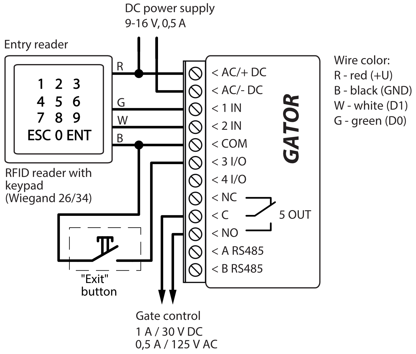 - The opening of the door or gate magnetic lock, turnstile is handled by the built-in relay of the GV17