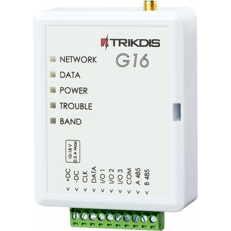 De Trikdis G16 4G GSM communicatiemodule werkt samen met Paradox, DSC en andere alarmcentrales via directe communicatie over de databus of seriële poort.