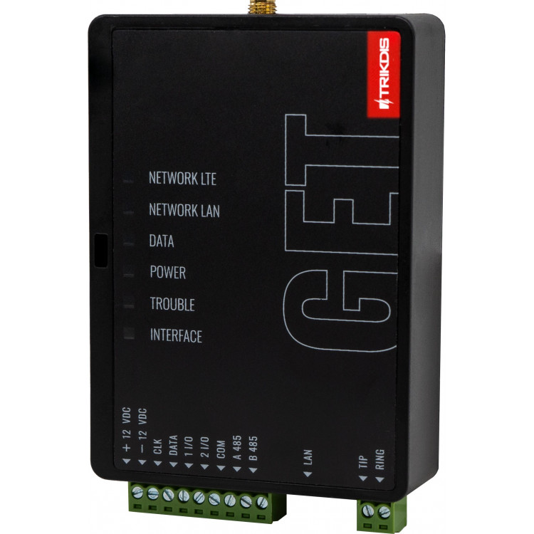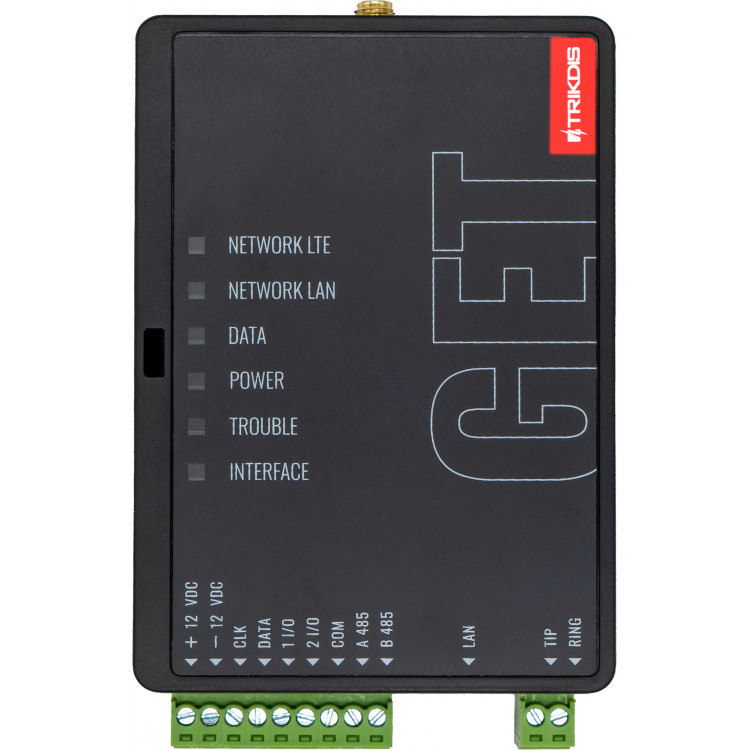 The Trikdis GET Ethernet + 4G smart communicator is the top-tier device from the manufacturer, combining the capabilities of the E16, E16T, G16, and G16T communicators.