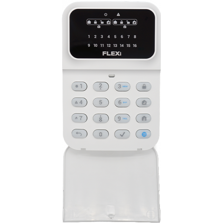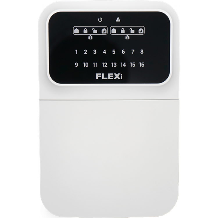 The FLEXi SK-LED Button is a reliable and user-friendly keypad with an LED display and physical buttons for the FLEXi SP3 alarm system control panel.